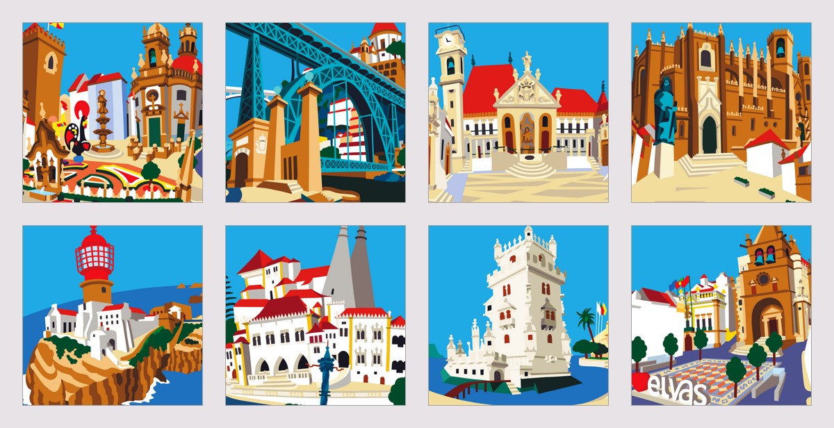 Urbicaturas são imagens que representam paisagens urbanas portuguesas em quadros de parede, T-shirts e ímanes.