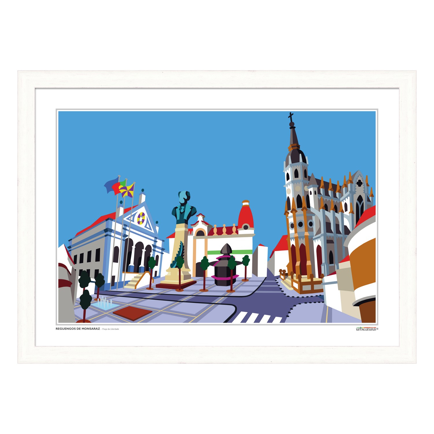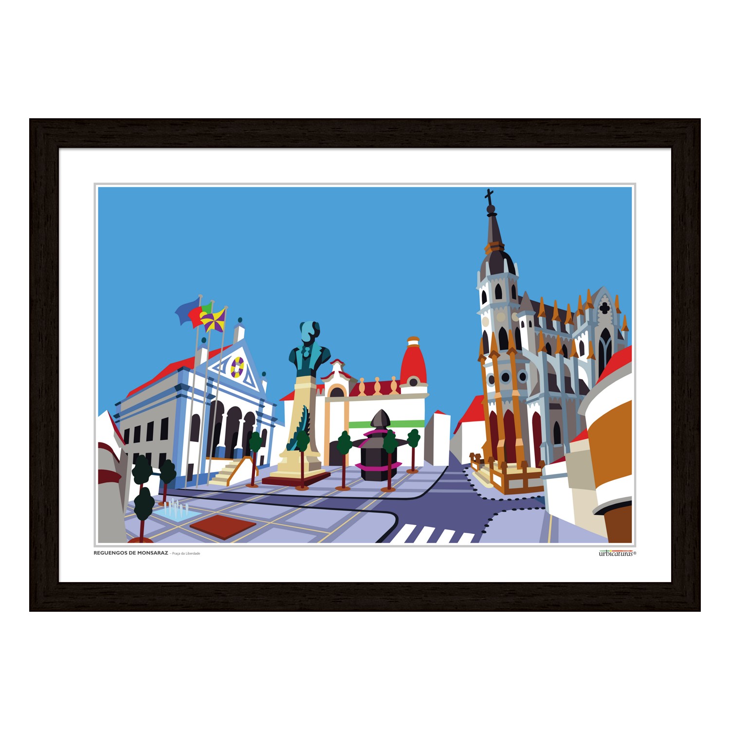 A cidade de Reguengos de Monsaraz é uma malha urbana plana, extensa e preenchida de edifícios de um ou dois pisos. Nela se destaca esta praça, recentemente renovada, onde estão a câmara e a Igreja de Santo António.